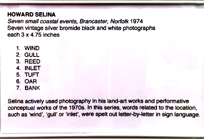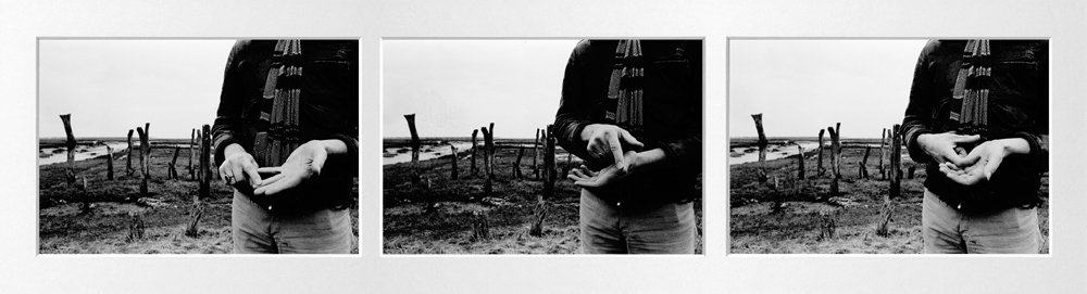 | In the sign-language pieces I was trying to explore what I thought of as a fundamental relationship; the one between myself (as the observer within a landscape), and the particular elements that help to define that landscape... And although sign-language uses‘words', in a sense, to describe a landscape; it also circumvents conventional ‘language', by being essentially both a physical and a visual medium. Before the written word evolved there was a time when signs and symbols were the currency of the day; the means by which ideas might be communicated. So I hope there is a thread, through time, that links anyone who observes the sign-language pieces, with the moment any one of those small ‘events' took place. And that the thread is both a visual and a verbal one; with the verbal one being transmitted, in a way, by a simple 'sleight of hand'... |