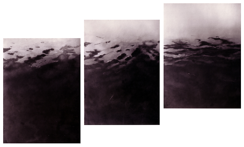 Another work in the river drawings series; this one a large three-panel piece based on the river Dove in Derbyshire, about 2 miles west of Tissington, in Dovedale. The temporary loan of a rather eccentric 'camper van' - essentially 'a van', with a mattress and bedding added! - enabled me to be in quite remote locations at times that would have otherwise been impractical. Hence a late Autumn mist, just after dawn, in a rather stunning valley. Again, on one level, a simple 'hymn to a landscape'; with the river, as so often, at its heart. But also a small nod in the direction of the (then ongoing) debate about 'illusion' in art.