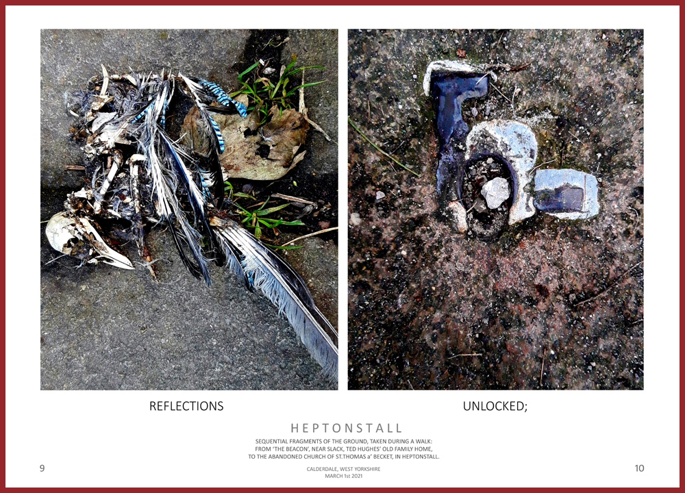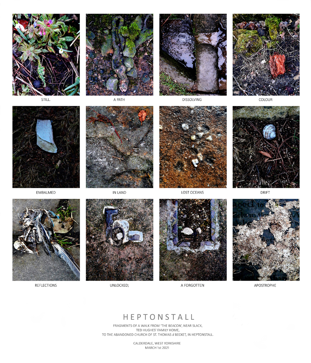 12 sequential images of the ground, taken during a walk from 'The Beacon' - Ted Hughes' old family home near the hamlet of Slack -